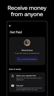 • Receive money from everyone — even if they’re not on Revolut — with Payment Links